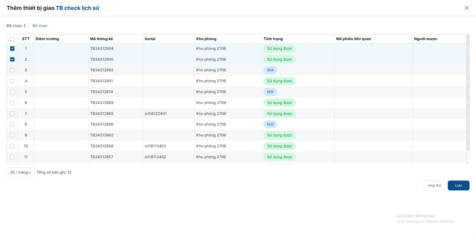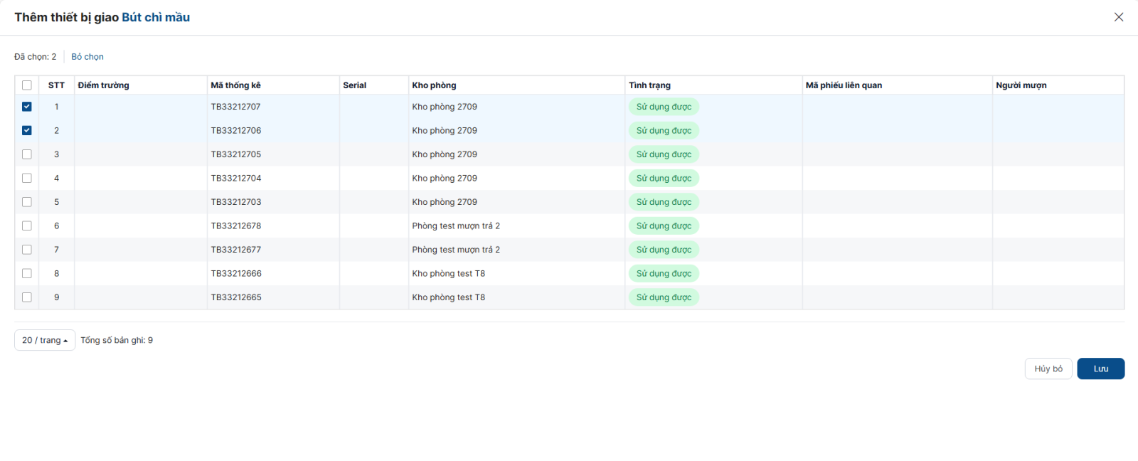 Bước 3: Click các checkbox để thêm thiết thị cho mượn