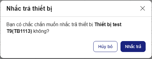 - Click Hủy bỏ để hủy bỏ việc trả thiết bị, quay lại màn hình danh sách.
