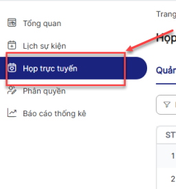 Bước 1: Admin Sở vào menu Họp trực tuyến