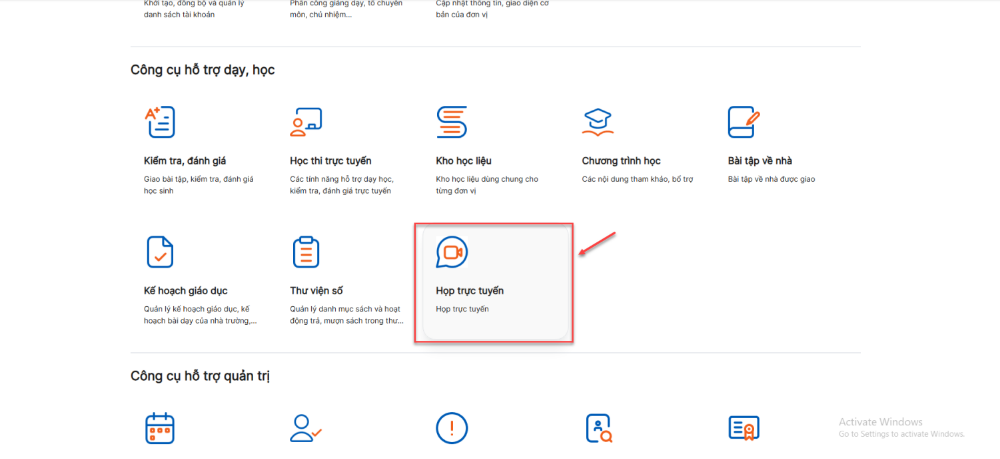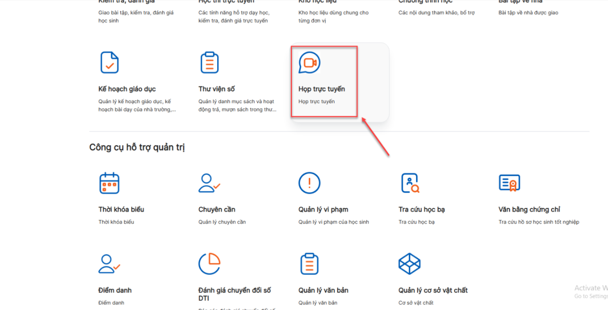Bước 2: Tại trang chủ, chọn module Họp trực tuyến