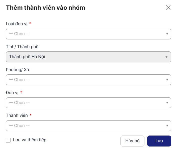 Lưu ý: Không thêm được tài khoản xã ở form thêm mới.