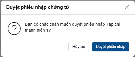 + Click “Duyệt” để thực hiện duyệt phiếu nhập