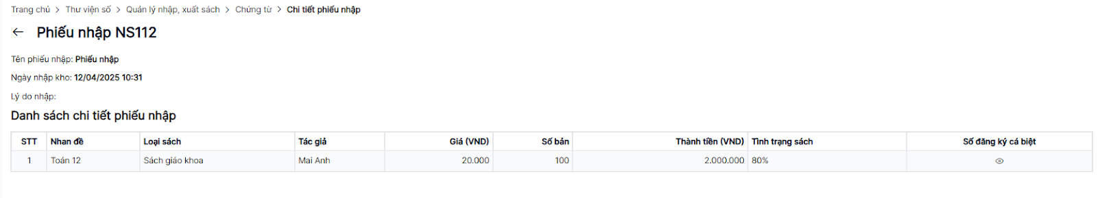 Xem chi tiết phiếu nhập