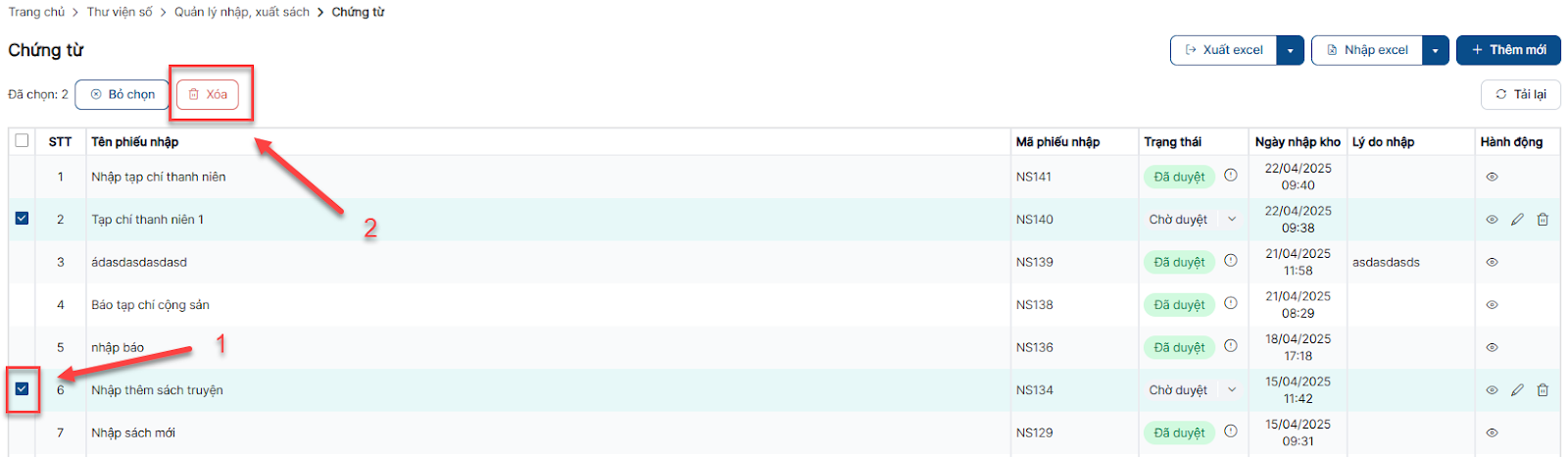 Xóa phiếu nhập