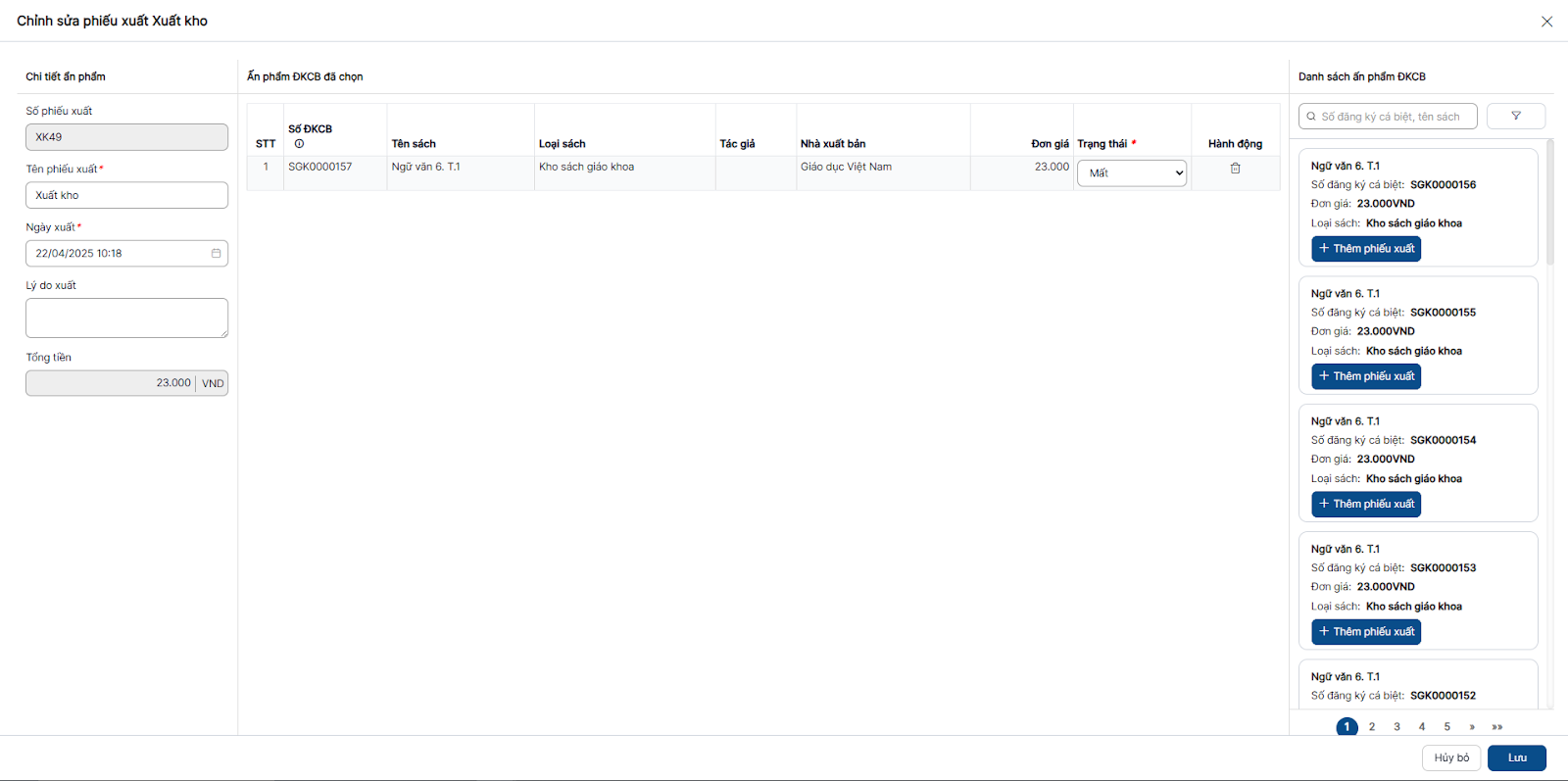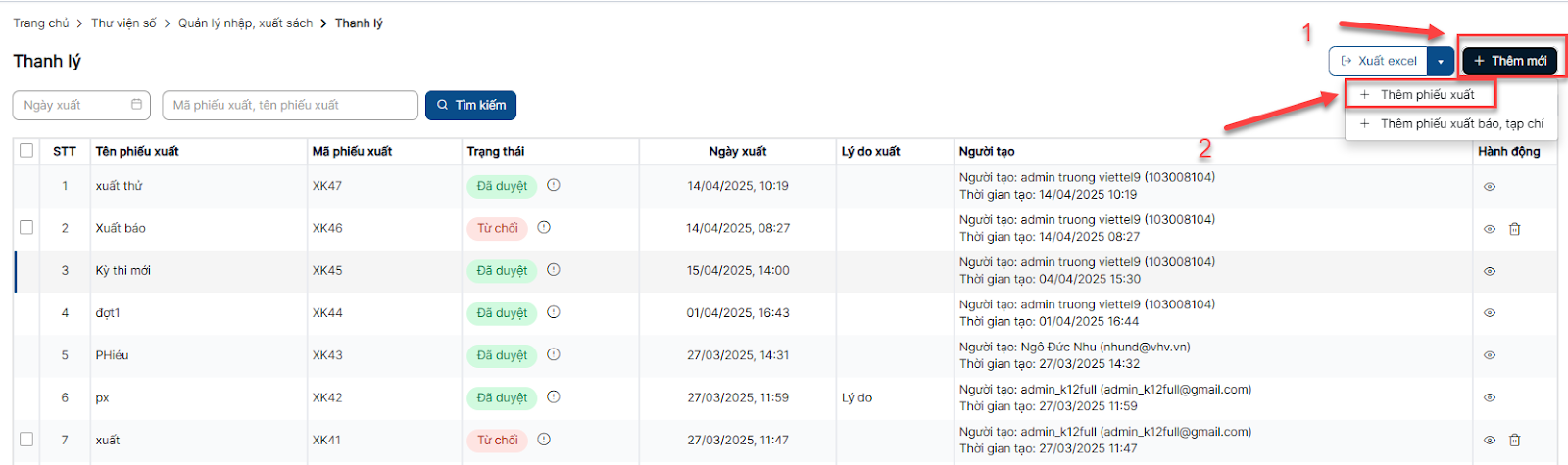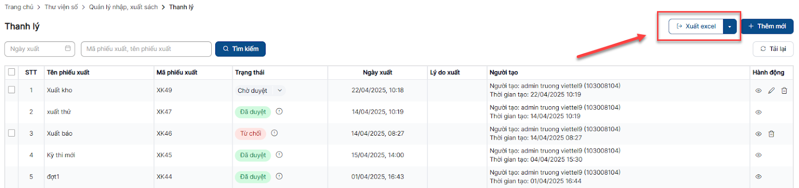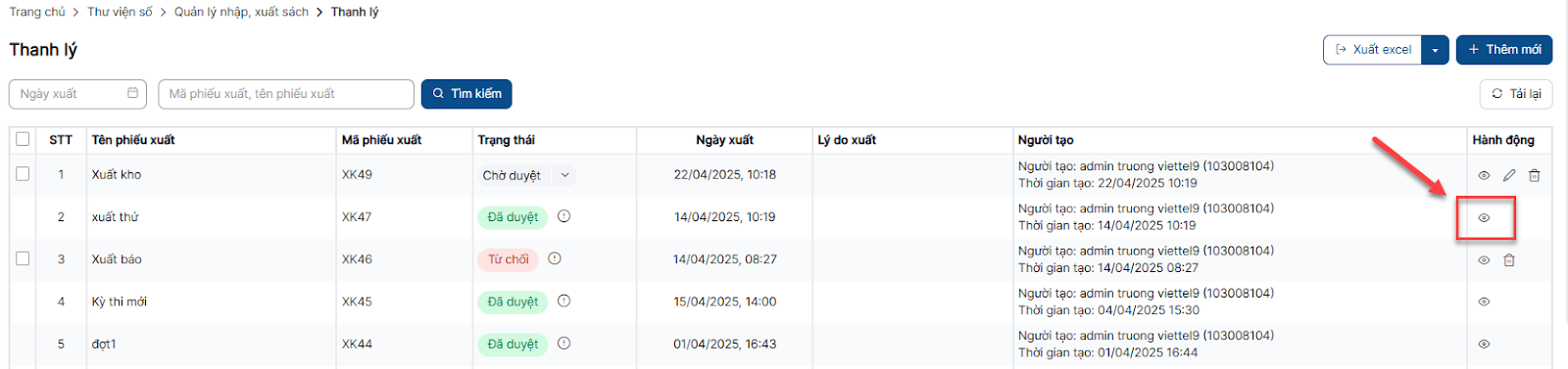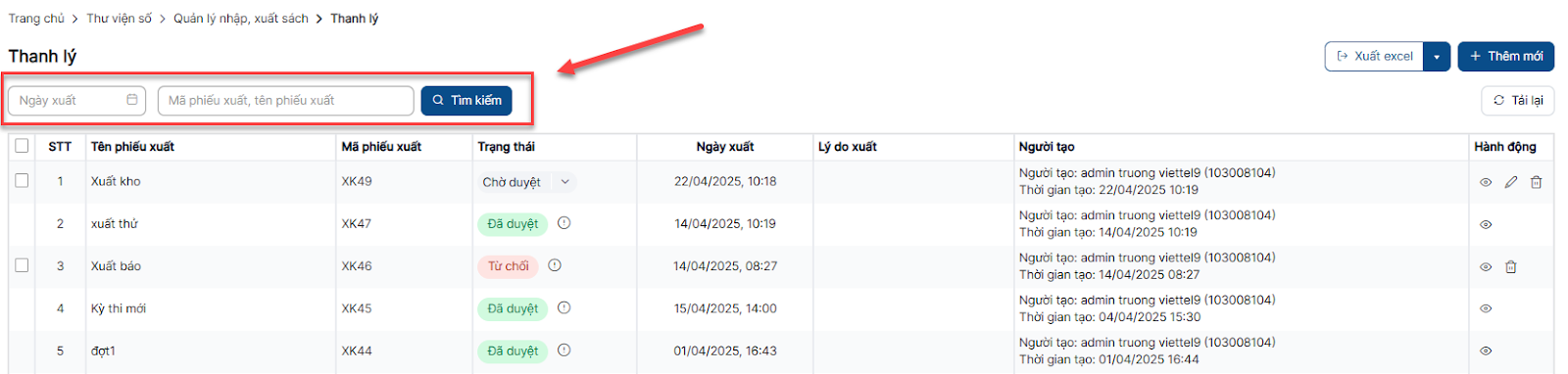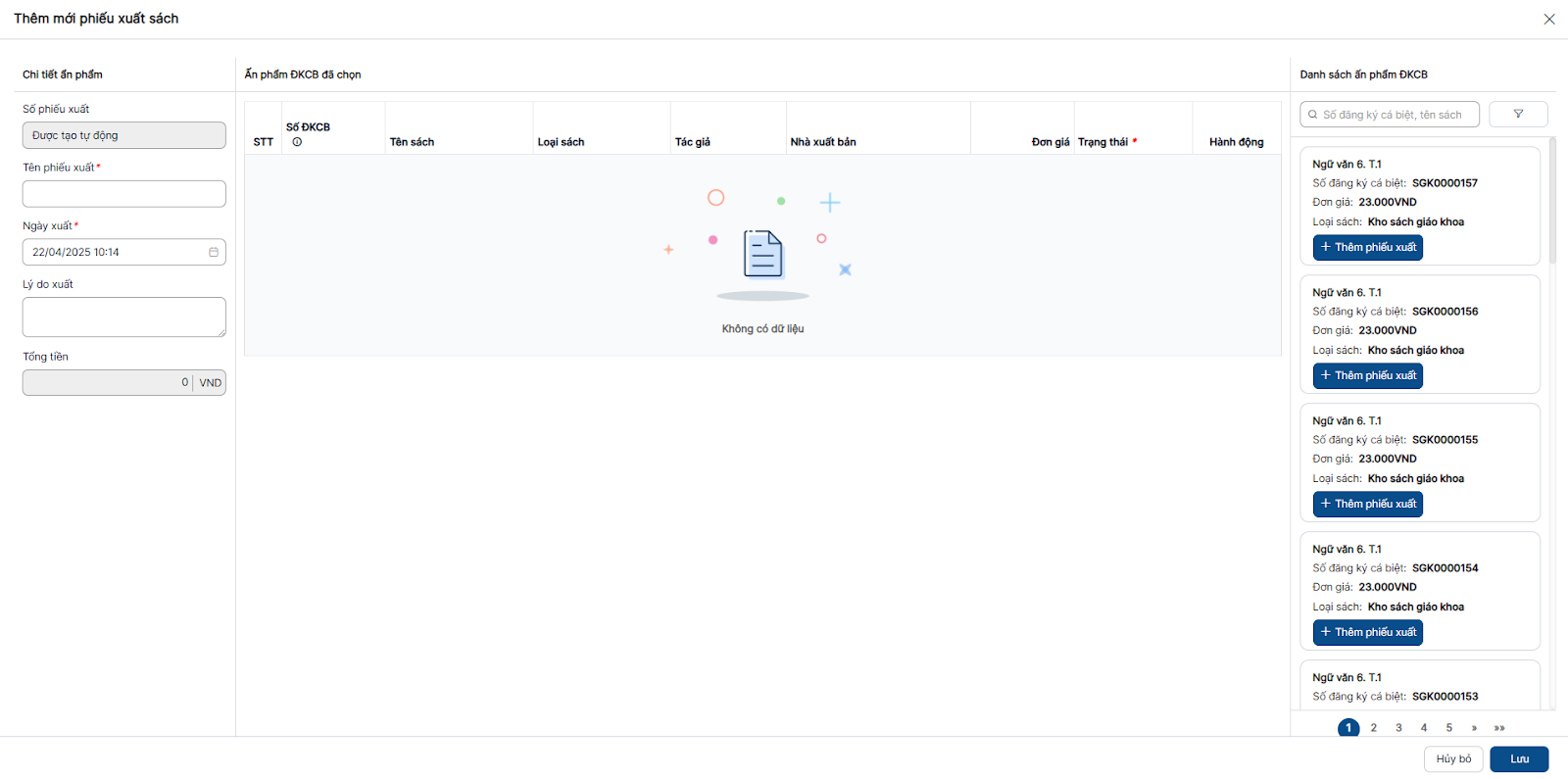 Thêm mới phiếu xuất sách