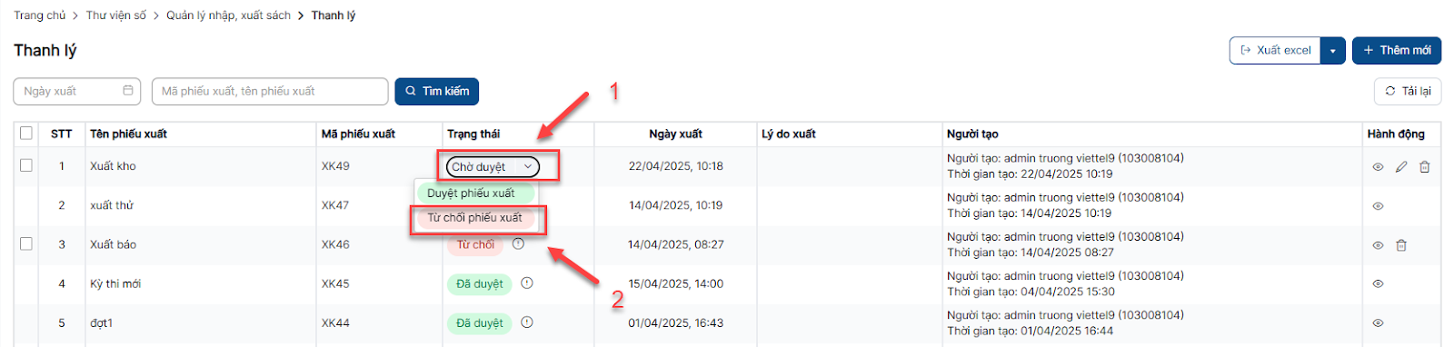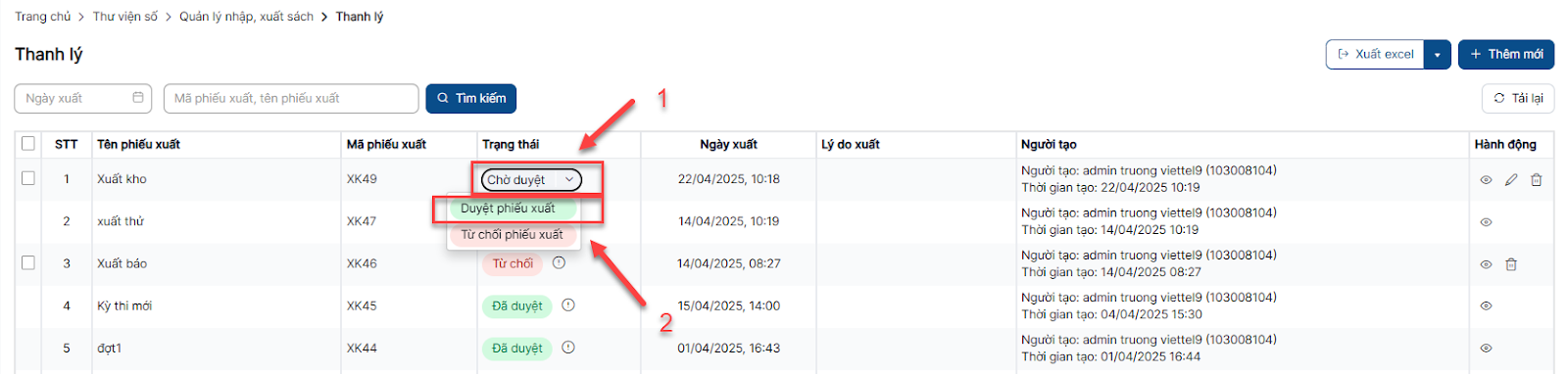 Duyệt phiếu xuất