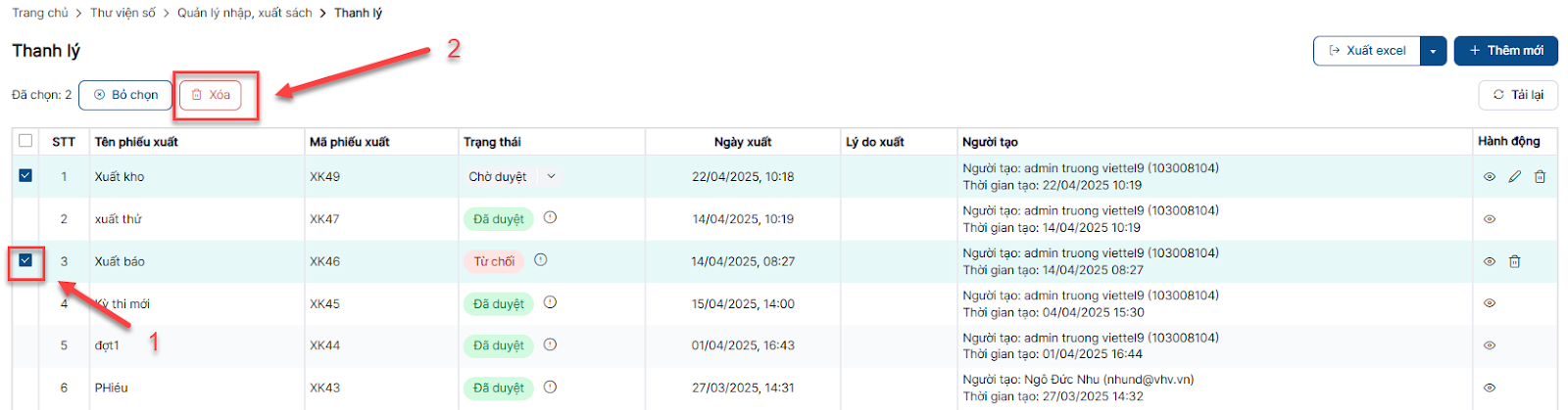 Xóa phiếu xuất
