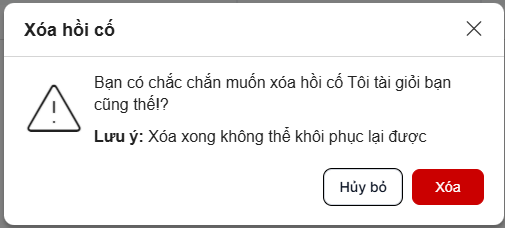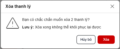 + Click button “Hủy bỏ” để hủy bỏ tháo tác xóa
