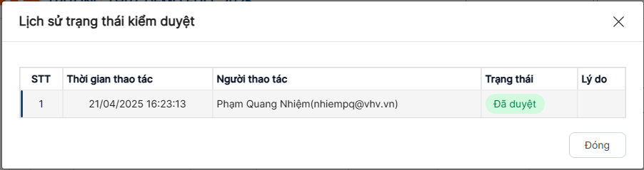 Bước 2: Hiển thị màn hình lịch sử trạng thái kiểm duyệt