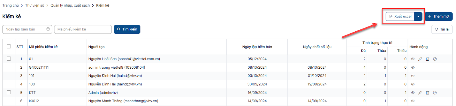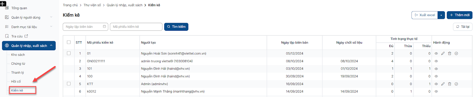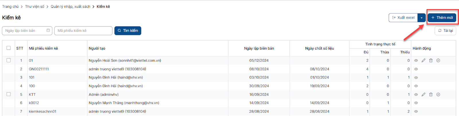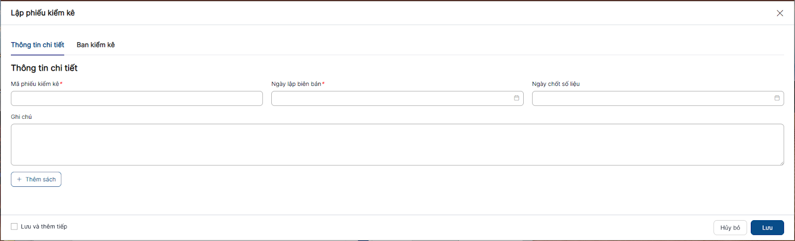 Thêm mới phiếu kiểm kê