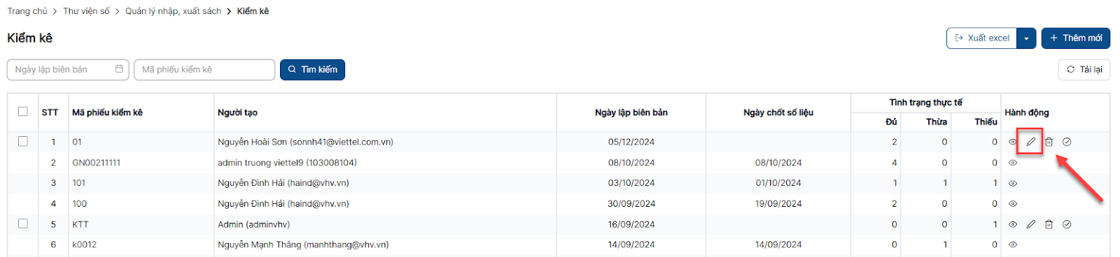 Bước 1: Trên màn hình danh sách > Click icon chỉnh sửa