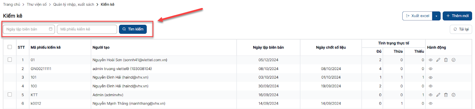 Tìm kiếm phiếu kiểm kê