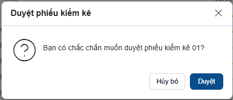 + Click “Duyệt” để thực hiện duyệt phiếu kiểm kê