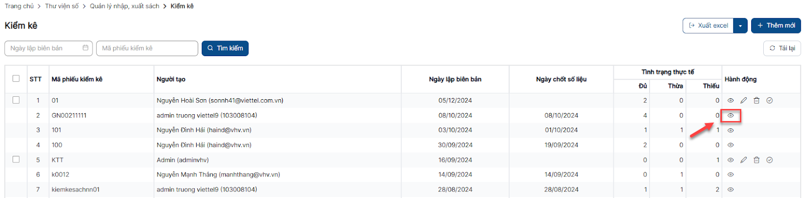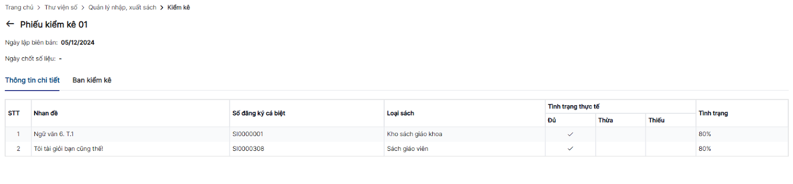 Xem chi tiết phiếu kiểm kê