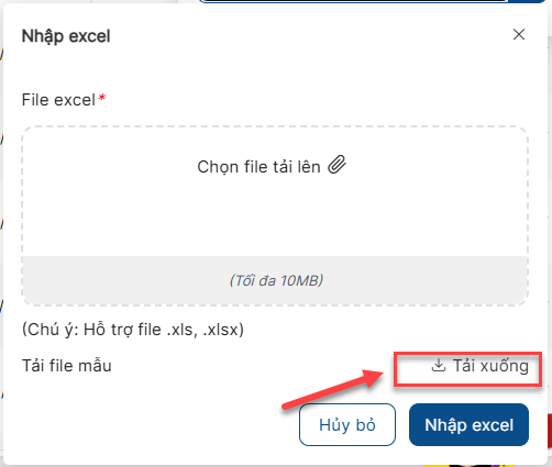 Bước 2: Tải xuống file mẫu trong form nhập excel