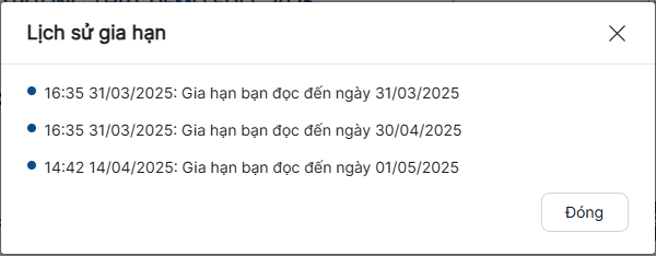 Bước 2: Hiển thị thông tin lịch sử gia hạn