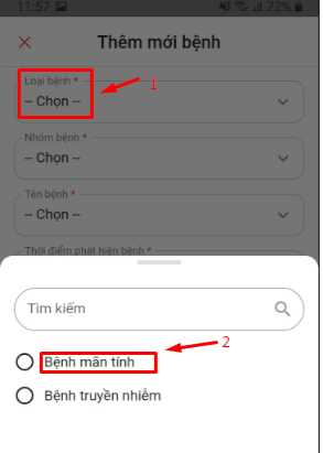 Bước 1: Touch button > Chọn loại Bệnh mãn tính