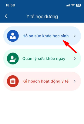 Bước 1: Trên màn hình danh sách chức năng > chọn Hồ sơ sức khỏe học sinh