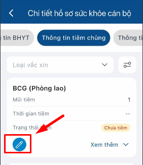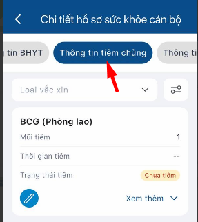 Bước 1:Touch vào Hồ sơ sức khỏe học sinh > Touch vào xem chi tiết > tab thông tin tiêm chủng