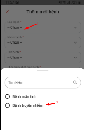 Bước 1: Touch button > Chọn loại Bệnh mãn tính