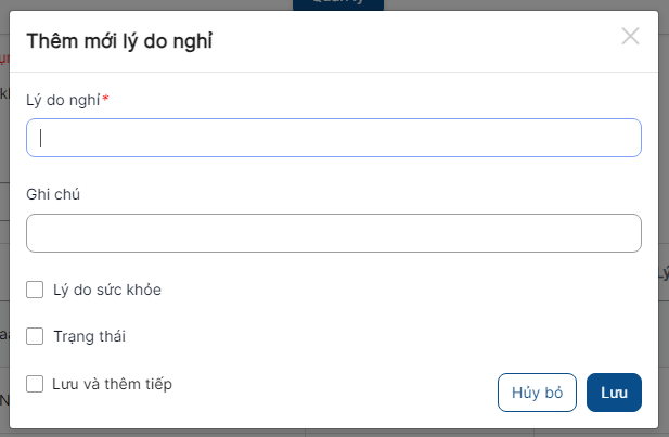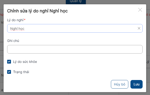 Chọn checkbox Lý do sức khỏe thì bản ghi sẽ hiển thị ở lý do sức khỏe