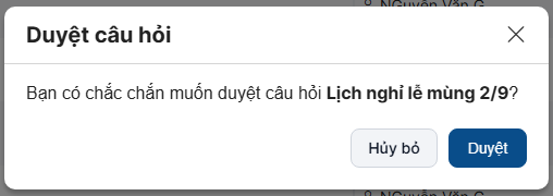 Bước 2: Màn hình hiển thị popup duyệt câu hỏi