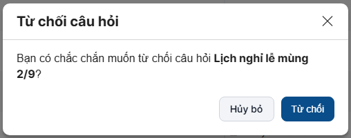 - Click Hủy bỏ để đóng thông báo từ chối, hủy việc từ chối câu hỏi