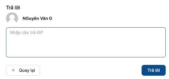 Bước 2: Hiển thị trường nhập câu trả lời phía dưới, Nhập câu trả lời > Click Trả lời để thực hiện trả lời câu hỏi, câu trả lời hiển thị phía dưới câu hỏi