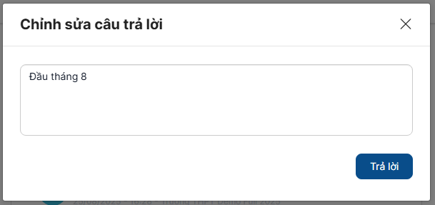 Bước 4: Cập nhật câu trả lời > Click Trả lời để thực hiện hoàn thành việc cập nhật câu trả lời thành công