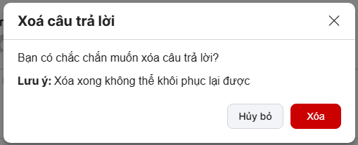 - Click Hủy bỏ để đóng thông báo xóa, hủy việc xóa câu trả lời