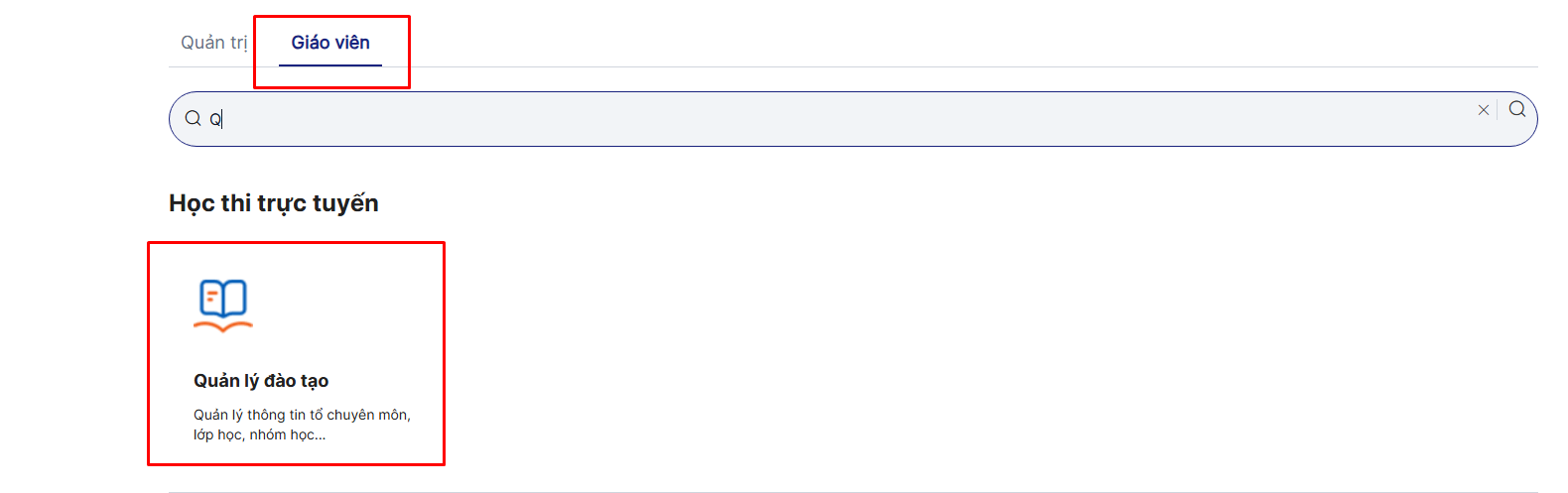 Bước 2: Giáo viên chọn quyền giáo viên > Chọn module Quản lý đào tạo
