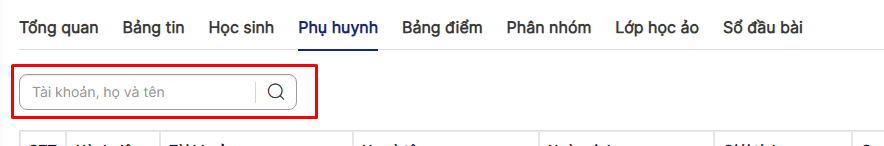 Bước 6: Giáo viên có thể tìm kiếm tài khoản thuộc loại người dùng muốn thay đổi mật khẩu