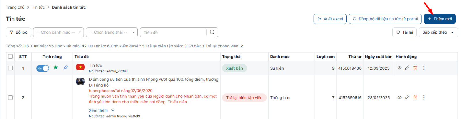 - Nếu trang portal tương ứng khi thêm tin có tích chọn “Đồng bộ tin tức” thì sẽ đồng bộ tin về trang Trường