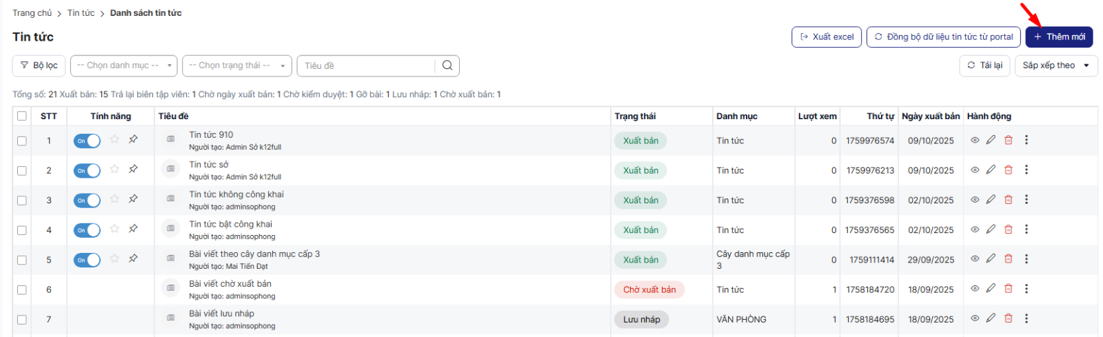 - Nếu trang portal tương ứng khi thêm tin có tích chọn “Đồng bộ tin tức” thì sẽ đồng bộ tin về trang Sở