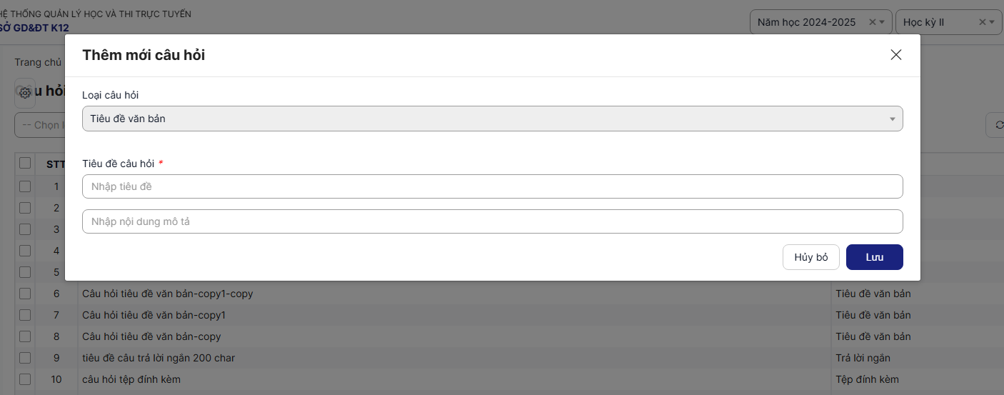 Trường hợp muốn thêm câu hỏi mới: