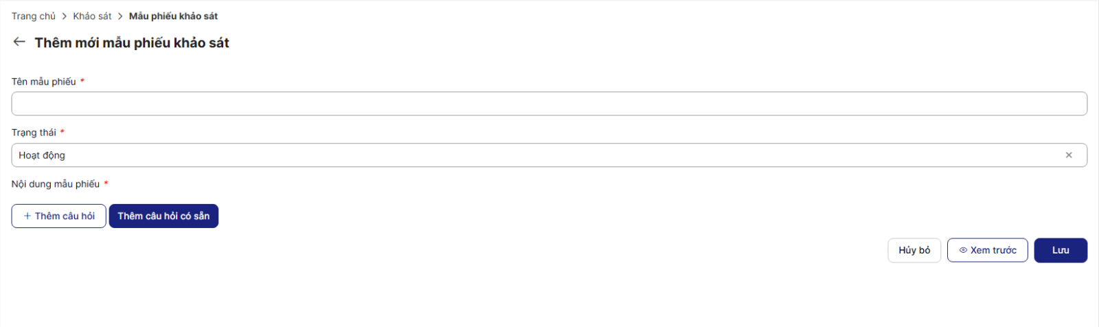 - Click Hủy bỏ để hủy việc thêm mới và quay về màn hình danh sách mẫu phiếu