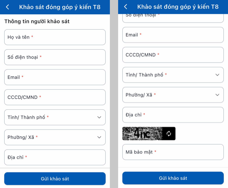 Bước 5: Sau khi nhập đầy đủ các trường bắt buộc > Click button Gửi khảo sát để hoàn thành việc tham gia khảo sát