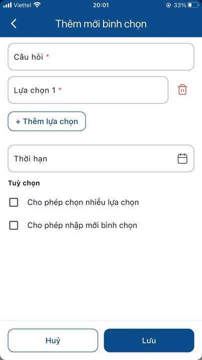 + Tích chọn cho phép nhập mới lựa chọn để người bình chọn có thể thêm lựa chọn khác
