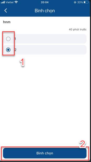 Bước 2: Hiển thị form Bình chọn > tích chọn lựa chọn