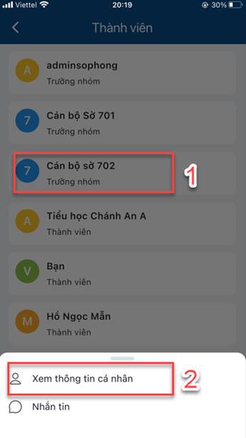 Bước 3: Nhấn và giữ thành viên muốn xem > Nhấn Xem thông tin cá nhân