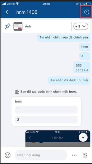 Bước 1: Trên màn hình danh sách đoạn chat > Nhấn vào 1 đoạn chat > Nhấn icon ba chấm > Nhấn Bình chọn