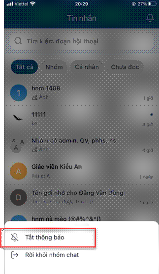Bước 2: Tắt thông báo thành công, khi có tin nhắn gửi đến đoạn chat, sẽ không có thông báo về điện thoại