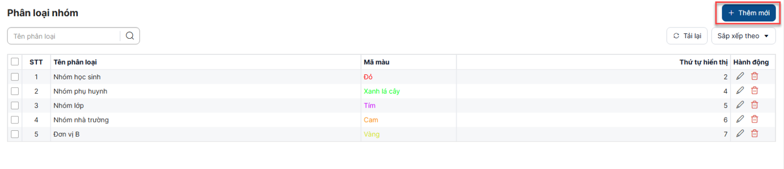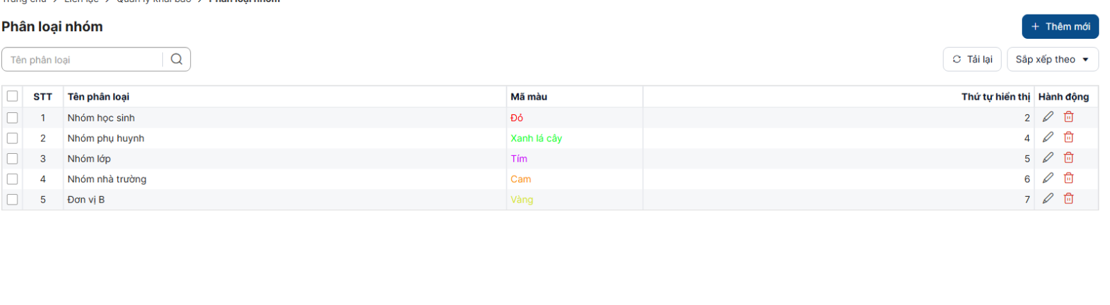 Bước 4: Hiển thị danh sách phân loại nhóm