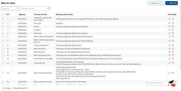 Bước 4: Hiển thị danh sách mẫu tin nhắn