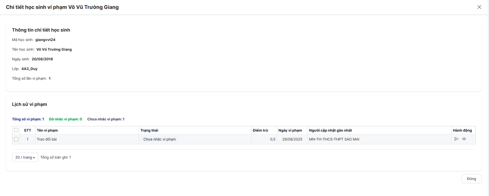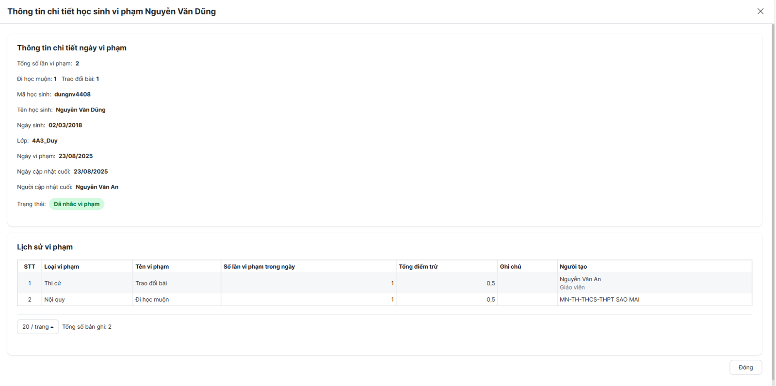 2. Xem Thông tin chi tiết học sinh vi phạm